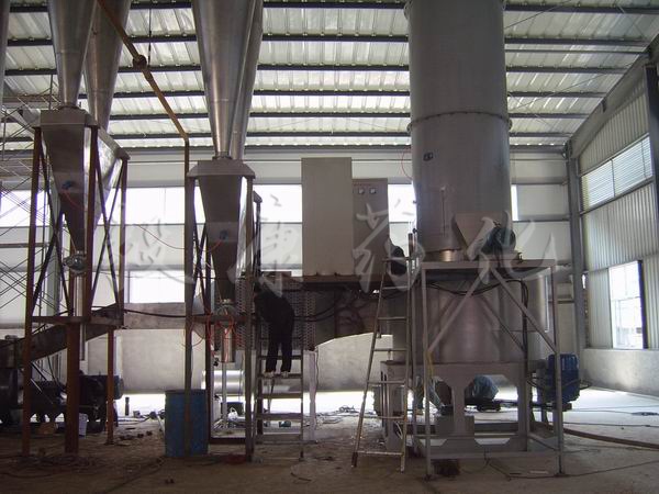 ● 干燥室装有分级环及旋流片,物料细度和终水份可调。(如碳酸钙终水份可调节器至≤0.1%)