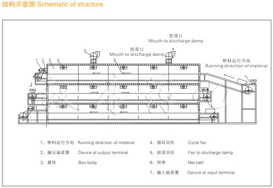 DW系列多层带式干燥机是成批生产用的连续式干燥设备,用于透气性较好的片状、条状、颗粒状物料的干燥,对于脱水蔬菜、催化剂、中药饮片等类含水率高、而温度不允许高的物料尤为合适;该系列干燥机具有干燥速度快、蒸发强度高、产品质量好的优点,对脱水滤饼状的膏状物料,需经造粒或制成条状后方可干燥。